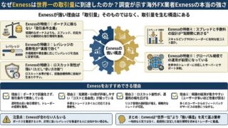 海外FX業者は数多く存在しますが、その中でも Exness(エクスネス) は「取引量が突出している」「ユーザー数の伸びが異常に速い」「条件が攻めているのに運用が安定している」といった文脈で語られやすい存在です。実際に、業界メディアの分析(F...